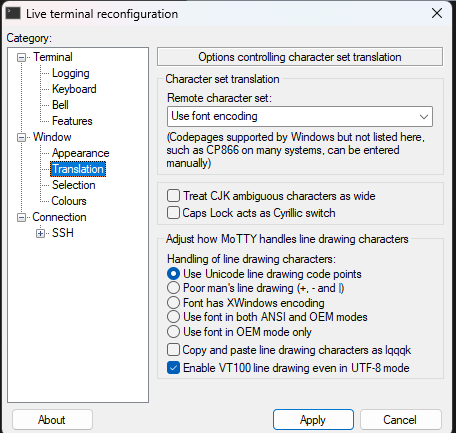 4. translation > use font encoding 으로 변경 후 apply