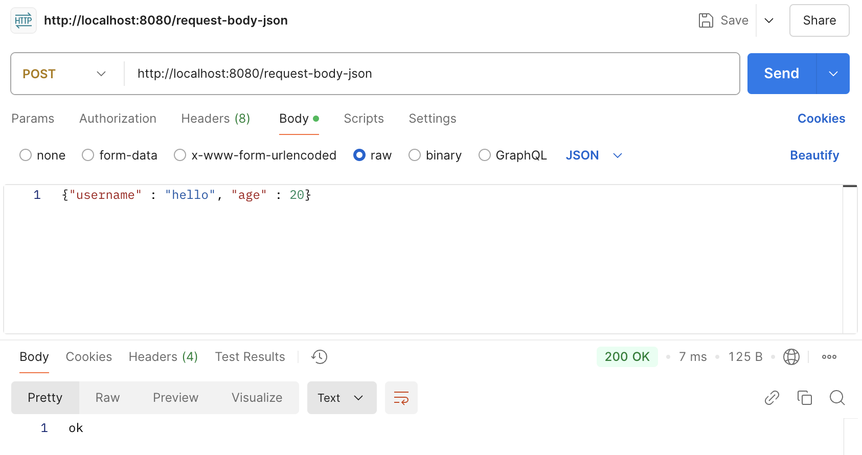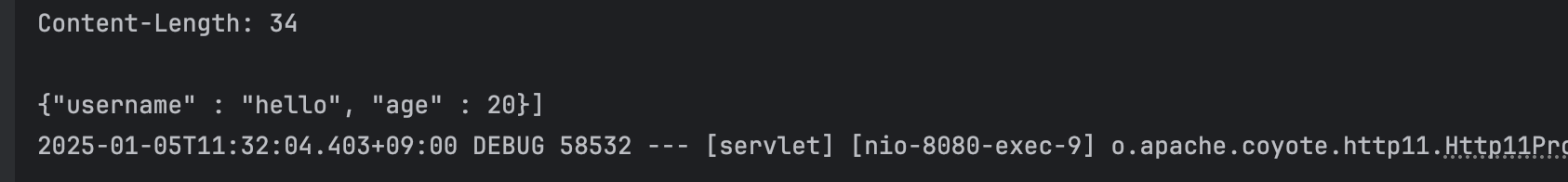 - 결과 : messageBody = {"username" : "hello", "age" : 20}