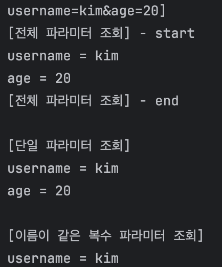 서버에서는 HttpServletRequest가 제공하는 메서드를 통해 쿼리 파라미터를 편리하게 조회할 수 있다