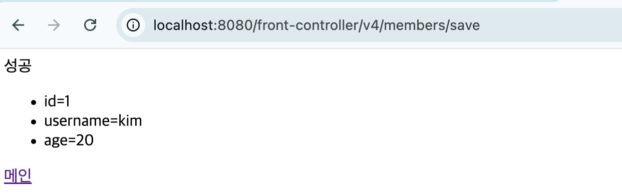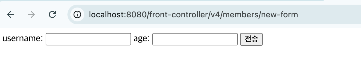 public class MemberFormControllerV4 implements ControllerV4 { @Override public String process(Map<String, String> paramMap, Map<String, Object> model) { return "new-form"; } }3. MemberSaveControllerV4