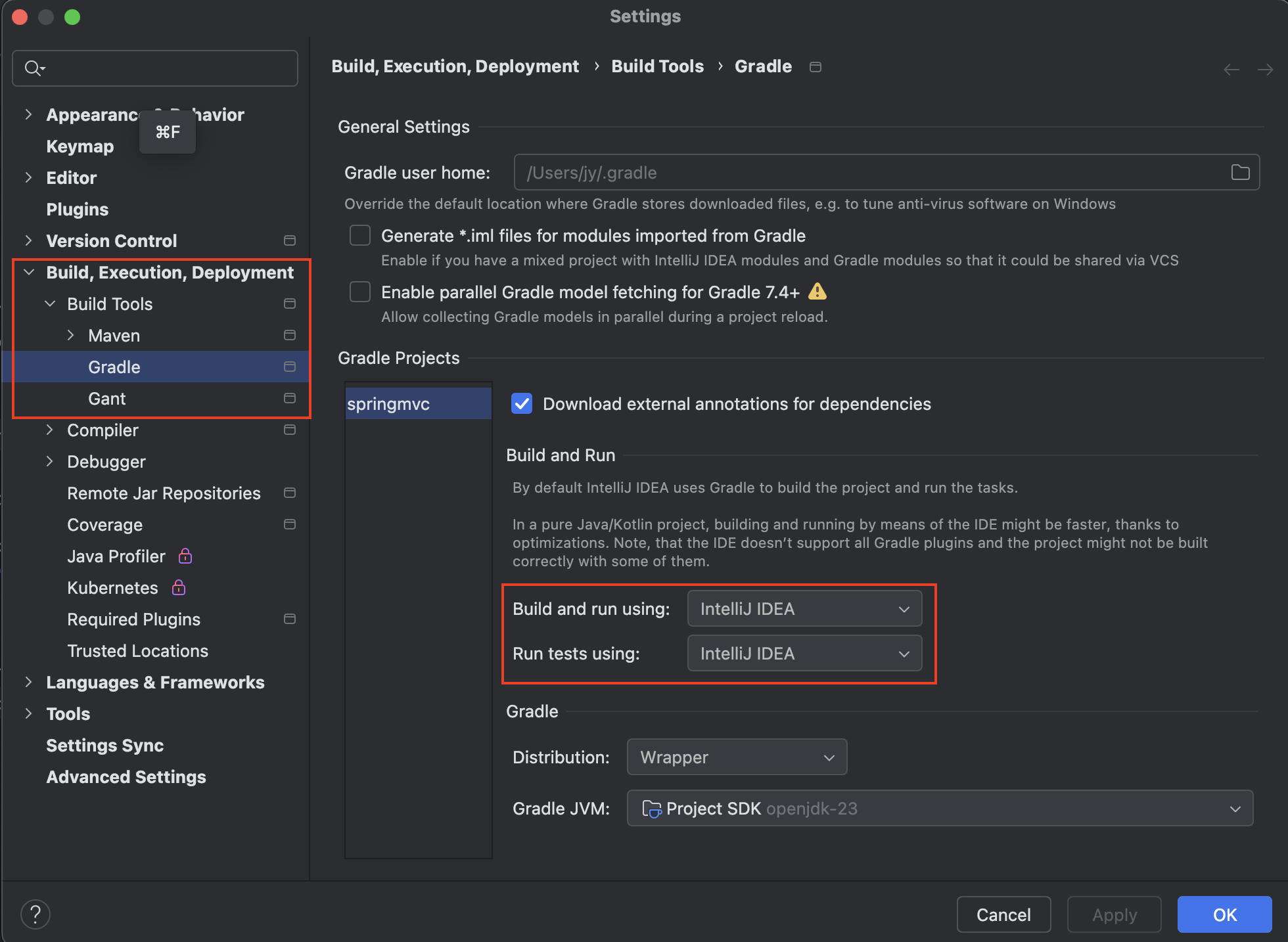 settings > build, execution, deployment > build tools > gradle 경로로 들어간다