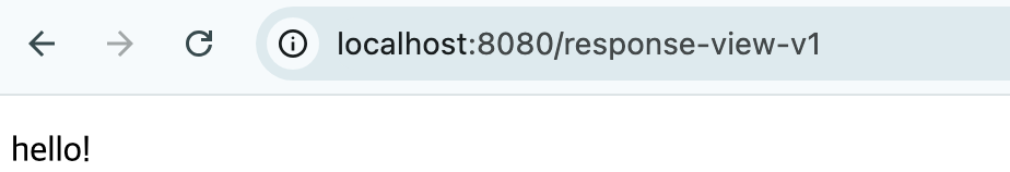 여기서는 뷰의 논리 이름인 response/hello를 반환하면 다음 경로의 뷰 템플릿이 렌더링 되는 것을 확인할 수 있다