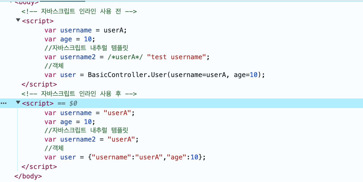 - 인라인 사용 후 : var username2 = "userA";