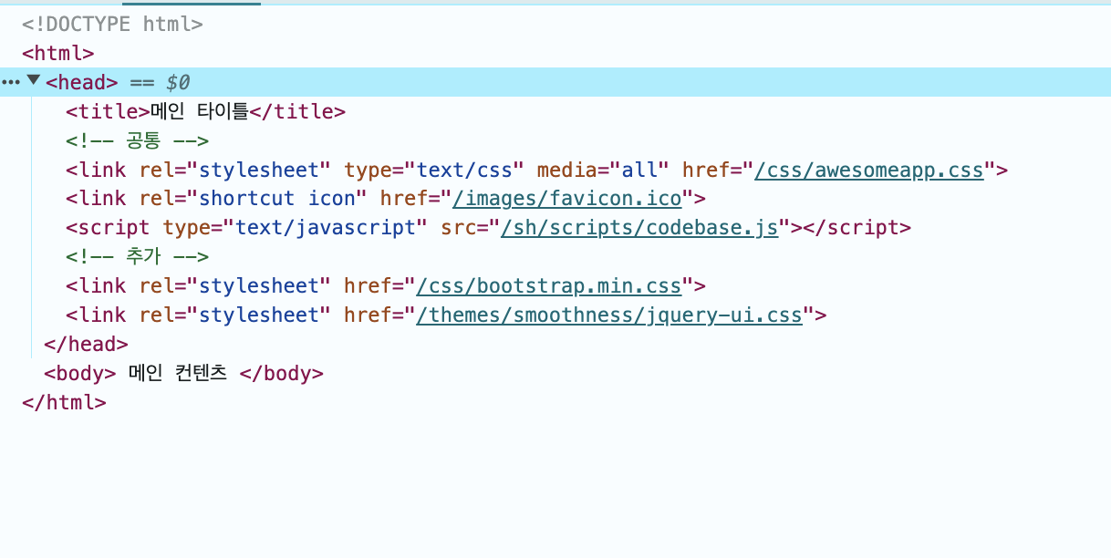 - 공통부분은 그대로 유지되고, 추가 부분에 전달한 <link>들이 포함되었다