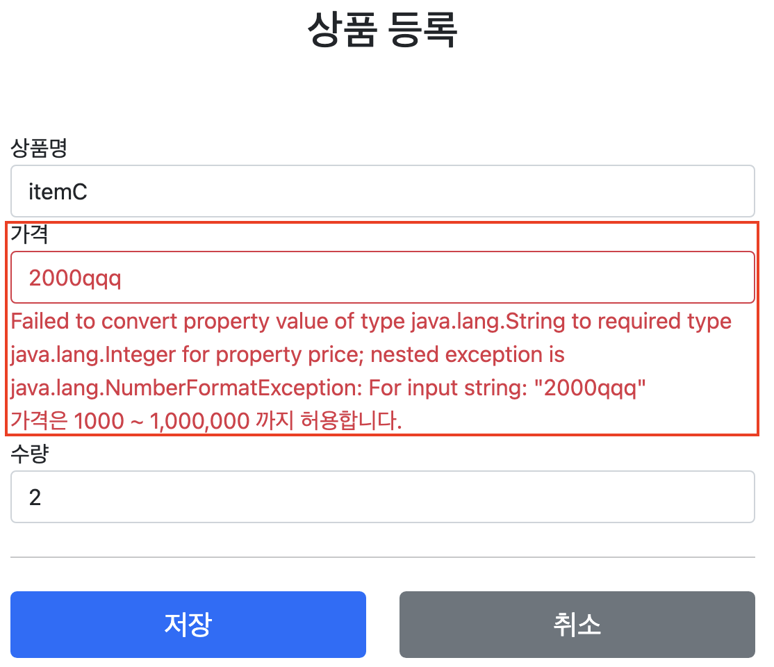 - 가격, 수량에 문자가 들어가면 검증 오류 처리