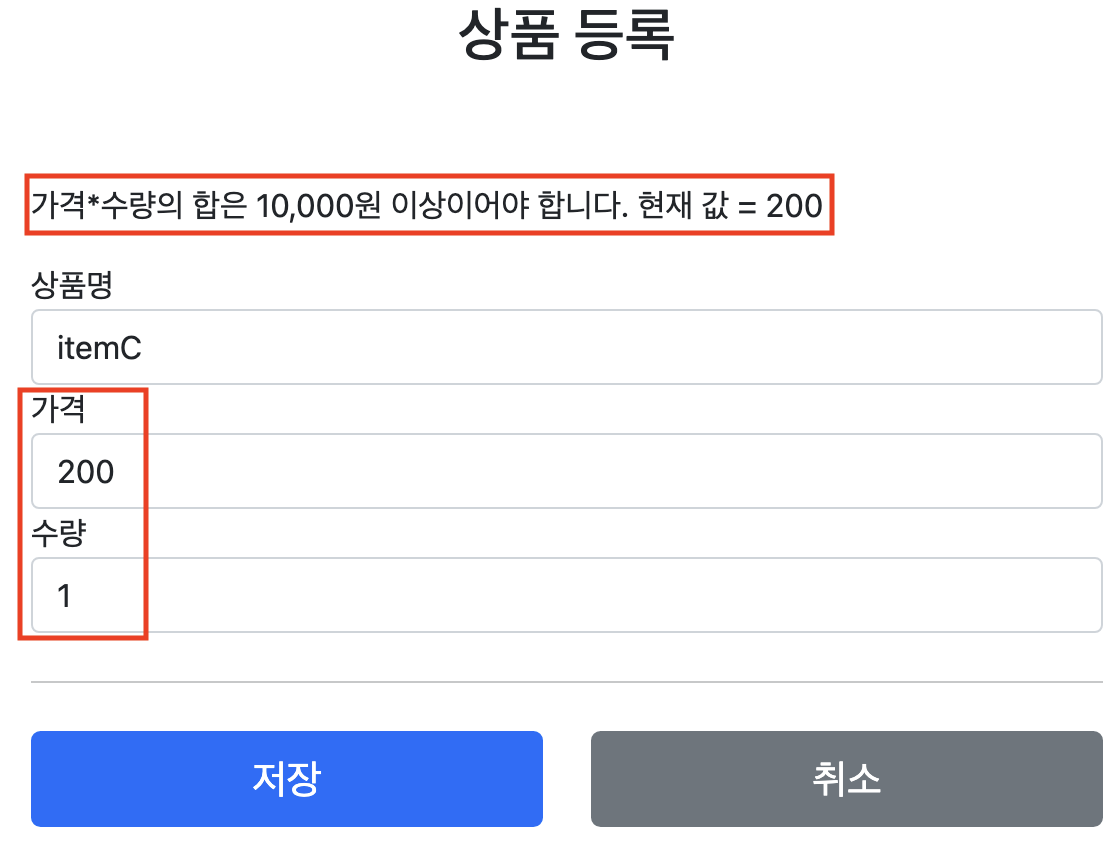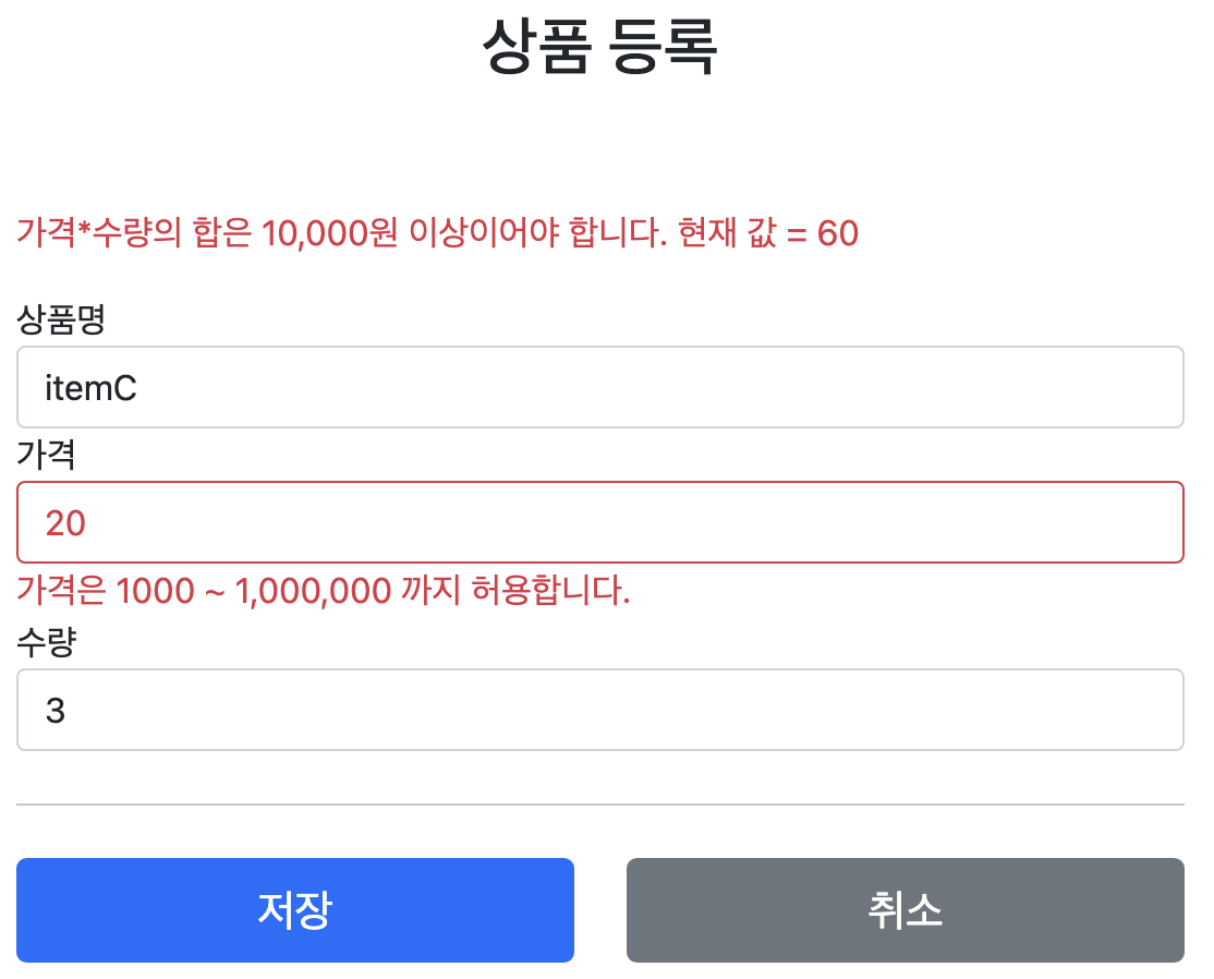 이렇게 검증에 실패한 경우 고객에게 다시 상품 등록 폼을 보여주고, 어떤 값을 잘못 입력했는지 알려주어야 한다