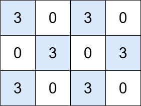 Input: grid = [[3,0,3,0], [0,3,0,3], [3,0,3,0]], k = 3