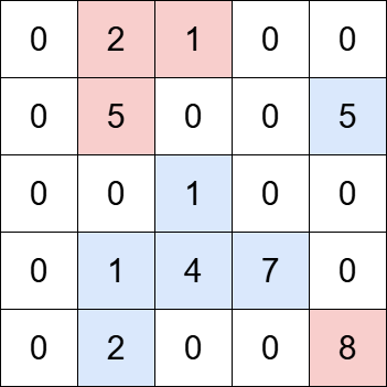 Input: grid = [[0,2,1,0,0],[0,5,0,0,5],[0,0,1,0,0],[0,1,4,7,0],[0,2,0,0,8]], k = 5