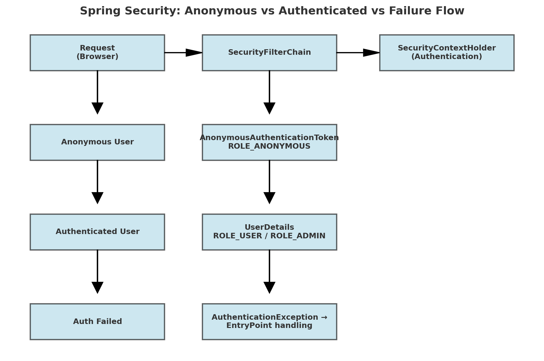 - Request → SecurityFilterChain → SecurityContextHolder