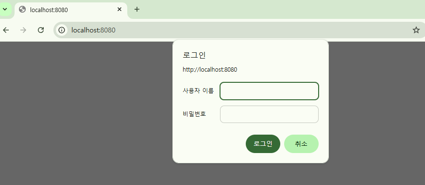 - 기본적으로 HttpBasicAuthenticationEntryPoint가 동작해서 브라우저에 401 Unauthorized + WWW-Authenticate 헤더 보냄