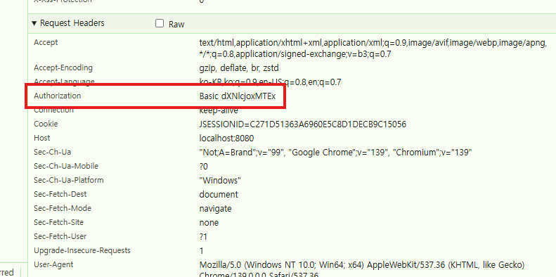 - 브라우저나 클라이언트에서 요청 헤더에 "Authorization: Basic base64(username:password)" 아이디/비밀번호 보내는 방식