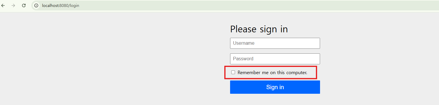 @EnableWebSecurity @Configuration public class SecurityConfig { @Bean public SecurityFilterChain securityFilterChain(HttpSecurity http) throws Exception { http.authorizeHttpRequests(auth -> auth.anyRequest().authenticated()) .formLogin(Customizer.withDefaults()) .rememberMe(rememberMe -> rememberMe // .alwaysRemember(true) .tokenValiditySeconds(3600) .userDetailsService(userDetailsService()) .rememberMeParameter("remember") .rememberMeCookieName("rmember") .key("security")); return http.build(); } @Bean public UserDetailsService userDetailsService() { UserDetails user = User.withUsername("user") .password("{noop}1111") .roles("USER").build(); return new InMemoryUserDetailsManager(user); } }