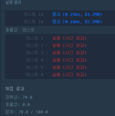 이번에도 정답은 맞는데 효율성에서 틀렸다