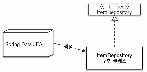 - JpaRepository 인터페이스만 상속받으면 스프링 데이터 JPA가 프록시 기술을 사용해서 구현 클래스를 만들어준다. 그리고 만든 구현 클래스의 인스턴스를 만들어서 스프링 빈으로 등록한다.