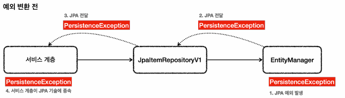 - JPA 예외를 스프링 예외 추상화(DataAccessException)로 변환하는 방법은 @Repository가 처리한다