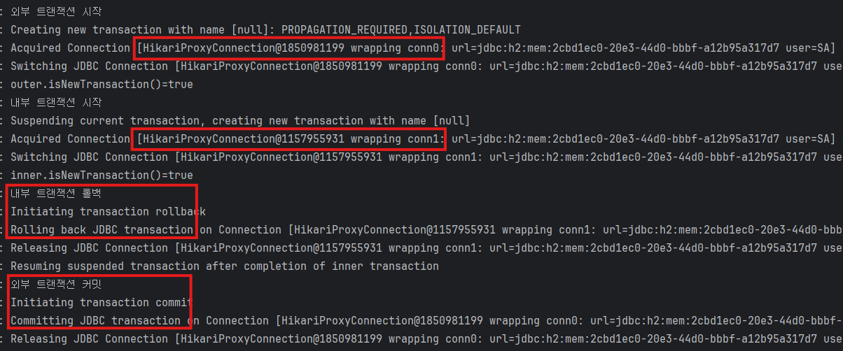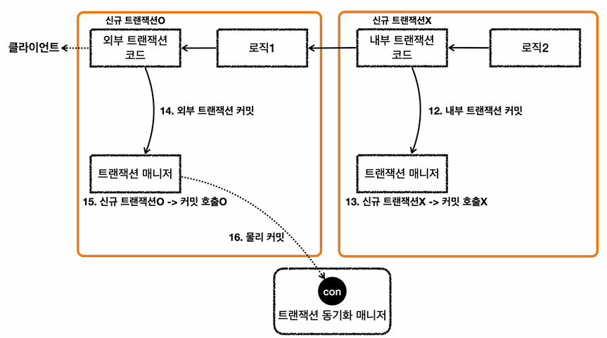 - 외부 트랜잭션은 신규 트랜잭션이기 때문에 DB 커넥션에 실제 커밋을 호출한다