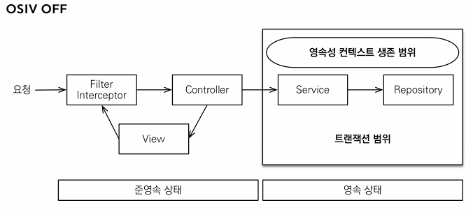 - OSIV를 끄면 모든 지연로딩을 트랜잭션 안에서 처리해야 한다
