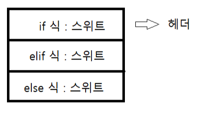 if나 while과 같은 키워드로 시작하여 콜론으로 끝나는 첫 부분을 헤더라고 한다.