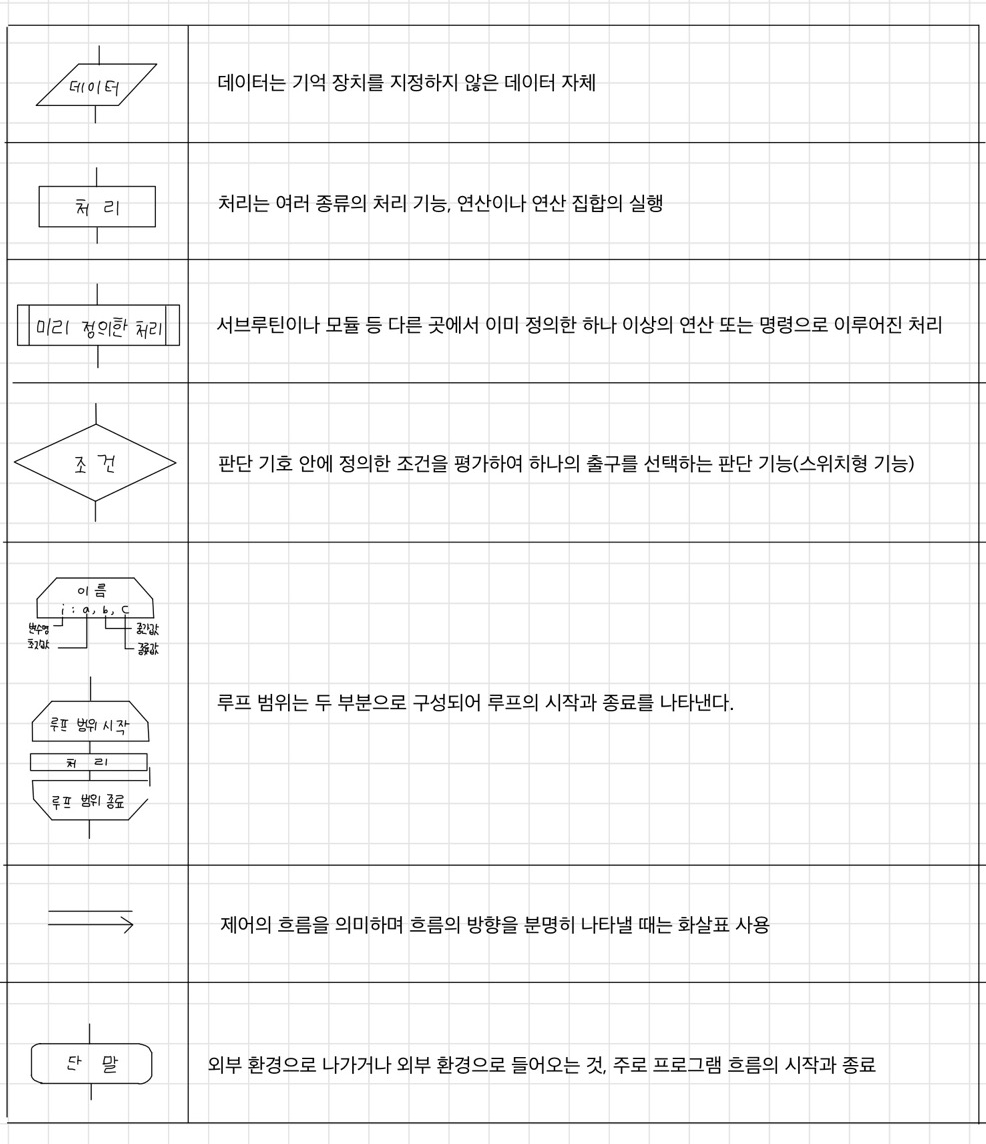 순서도는 문제를 정의/분석하고 해결하는 방법을 그림으로 표현한다.