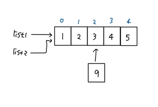 따라서 list 1의 값이 변경되면 list 2의 값도 변경된다