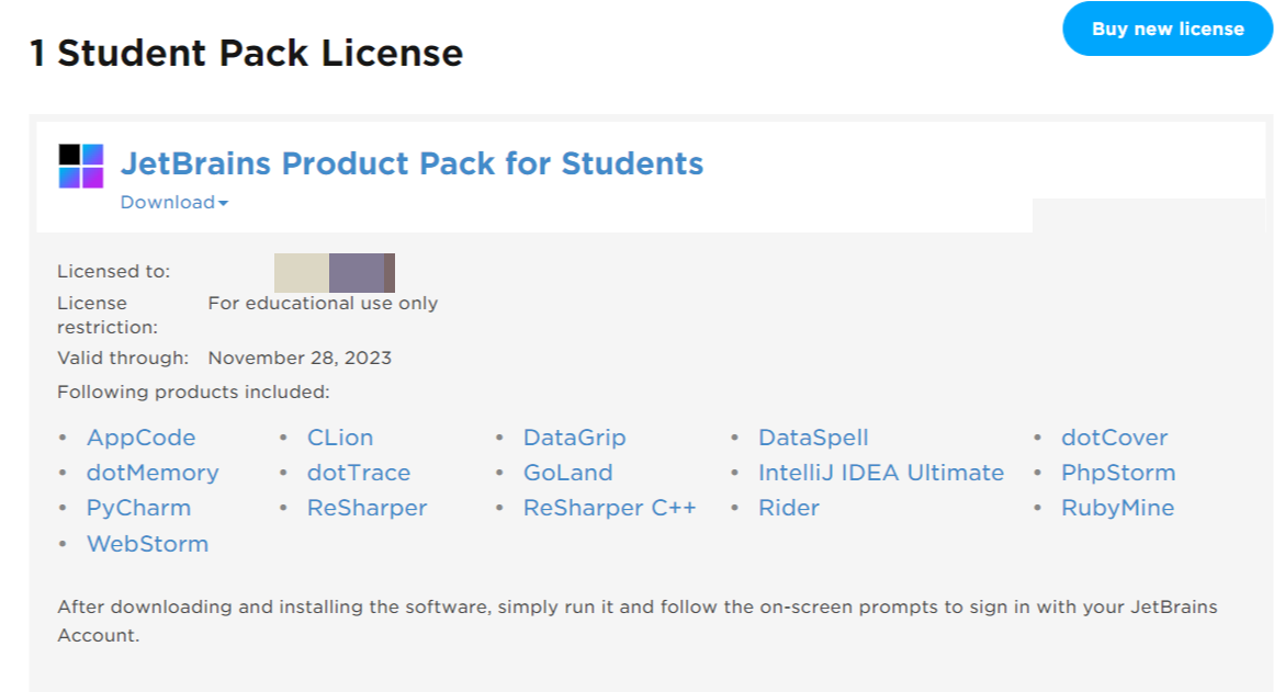 찾아보니 학생 인증하면 유료 버전도 사용 가능하며 대신 1년마다 갱신해야 한다.