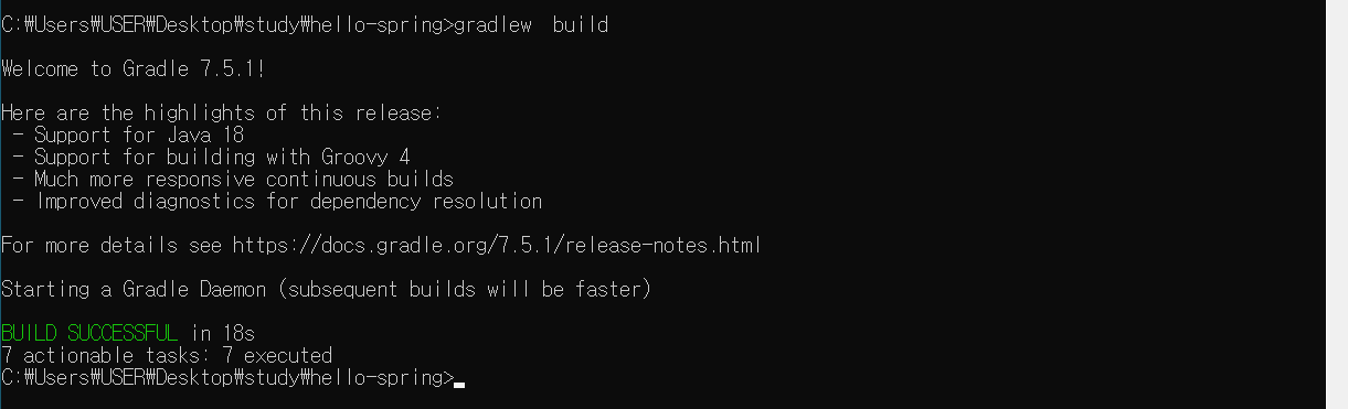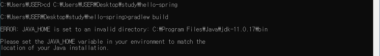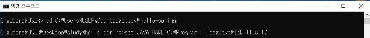 예) cd C:\Users\USER\Desktop\study\hello-spring