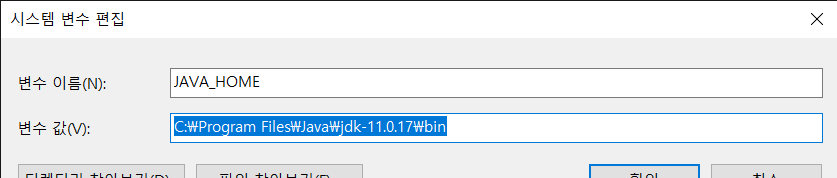 예) set JAVA_HOME=C:\Program Files\Java\jdk-11.0.17