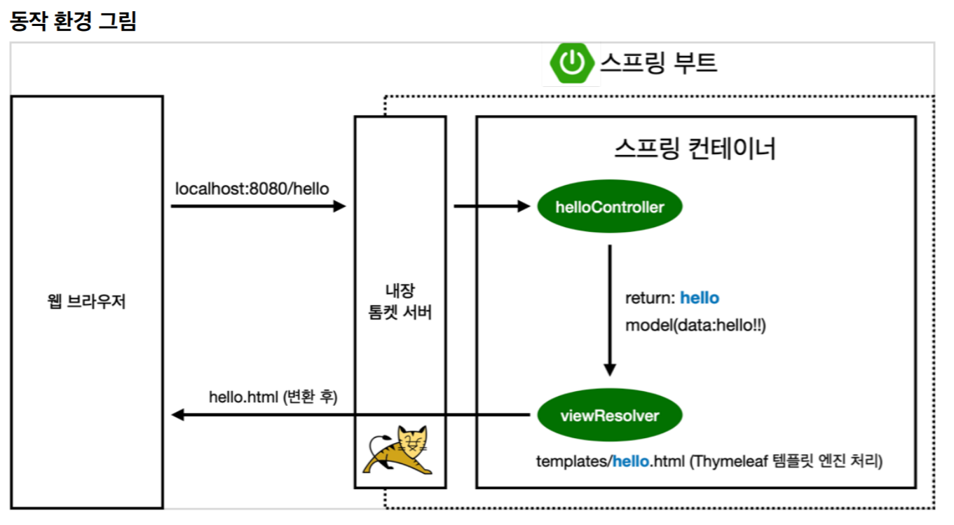 - 컨트롤러에서 리턴 값으로 문자를 반환하면 뷰 리졸버(ViewResolver)가 화면을 찾아서 처리한다.