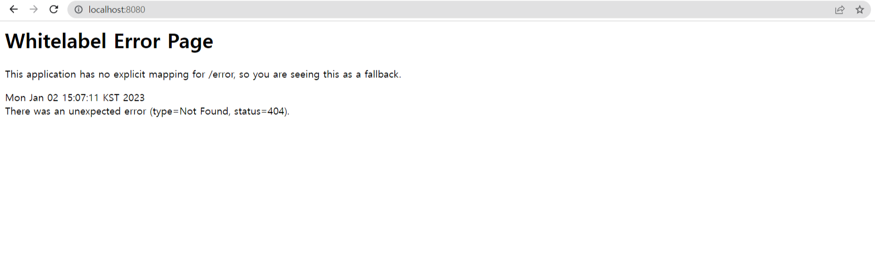 4. http://localhost:8080/ 확인하기, error page가 나오면 성공