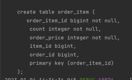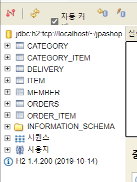 package jpabook.jpashop.domain; import lombok.Getter; import lombok.Setter; import jpabook.jpashop.domain.item.Item; import javax.persistence.*; import java.util.ArrayList; import java.util.List; @Entity @Getter @Setter public class Category { @Id @GeneratedValue @Column(name="category_id") private Long id; private String name; @ManyToMany @JoinTable(name="category_item", joinColumns = @JoinColumn(name="category_id"), inverseJoinColumns = @JoinColumn(name="item_id")) private List<Item> items = new ArrayList<>(); //다대다관계 > 중간 테이블(CATEGORY_ITEM) 필요 > @JoinTable(name="category_item")로 연결 //실무에서는 거의 사용하지 못함 > 필드 추가 불가능 @ManyToOne @JoinColumn(name="parent_id") private Category parent; @OneToMany(mappedBy = "parent") private List<Category> child = new ArrayList<>(); //parent, child > 스스로 양방향 연관관계 생성 }- 테이블 생성 완료